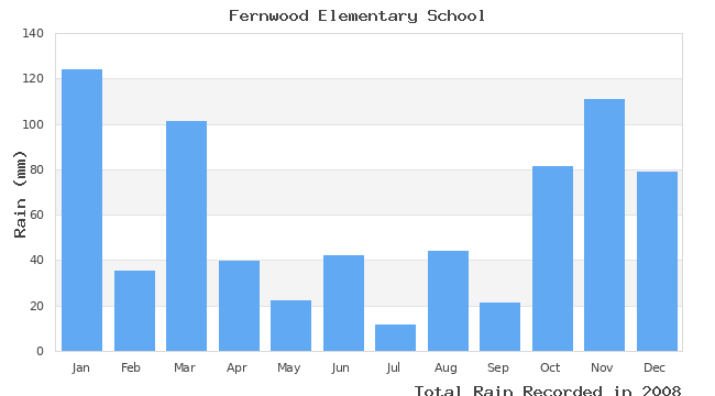Daily and Monthly Rain Totals for 2008 at Fernwood Elementary School