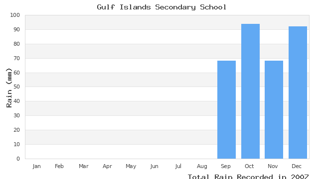Daily and Monthly Rain Totals for 2007 at Gulf Islands Secondary School