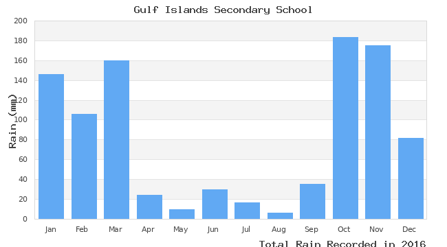 Daily and Monthly Rain Totals for 2016 at Gulf Islands Secondary School