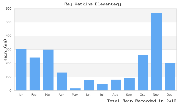Daily and Monthly Rain Totals for 2016 at Ray Watkins Elementary