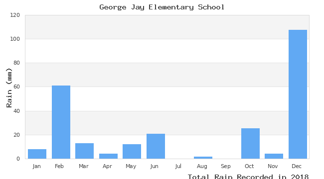 Daily and Monthly Rain Totals for 2018 at George Jay Elementary School